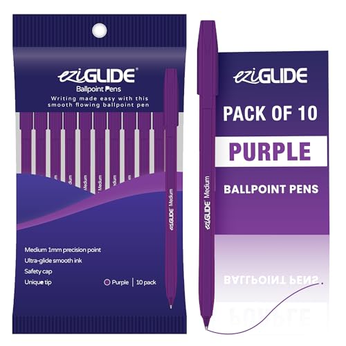 - PURPLE PENS: Pack of 10 – Medium Point Nib (1.0mm) The Eziglide pen nib is fixed to ensure the pen can`t be taken to bits, designed with schools in mind to prevent unscrewing or general fiddling!