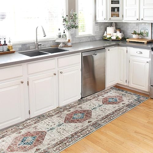 - 【Vintage Distressed Runner Rug】Printed tribal pattern and mixed rust beige and retro blue color,distressed long laundry room runner rug is unique and intricate but the colors are not too loud and busy, creating an antique feel and retro aesthetics, working well with most interior style,adding elegant style to any room in your home