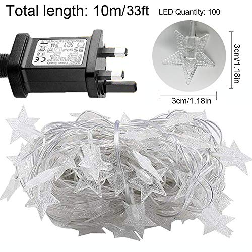 - -★【Widely Used】- The stars string lights is ideal for indoor/Outdoor decorations, it can illuminate the indoor and outdoor romantic atmosphere! The vertical line of the 10 Metre String Lights can be cut to the length you want without affecting the use. It can be hung on walls, windows, doors, floors, ceilings, Christmas trees, important festivals and etc.