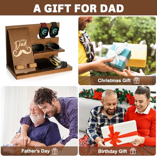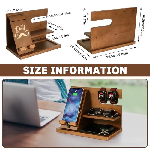 - Wood Phone Docking Station for Dad – This Organizer Stand let you keep messy wires out of the way, giving your phones and devices a designated space. This wooden docking station for dad is compatible with all mobile phones, including any iPhone and Android phone.