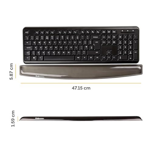 - PRODUCT DIMENSIONS – The dimensions for the Fellowes Crystals Gel keyboard wrist rest are: H15.9 x W58.7 x D471.5mm