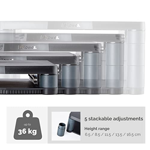 - ERGONOMIC MONITOR STAND – Reduce neck, shoulder and eye strain with five adjustable height positions: 6.5 cm, 8.5 cm, 11.5 cm, 13.5 cm and 16.5 cm