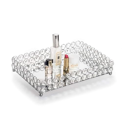 - Crystal Decorative Tray Measures & Material: 12 x 8x 2.16 Inches(L x W x H) / 30 x 20 x 5.5cm; Net Weight: 1.43lb/ 651g; Crystal Beads strung Metal Rings. Mirror Surface with Sturdy Base.(Please remove the Protective film before use)