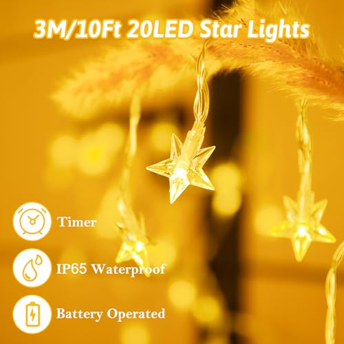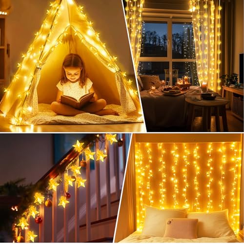 - 🌟【Star Fairy Lights】Our star fairy lights consist of 3M string lights and 20 stars, sparkling stars perfect for decorating bedrooms, also suitable for Christmas with Christmas trees and garlands!