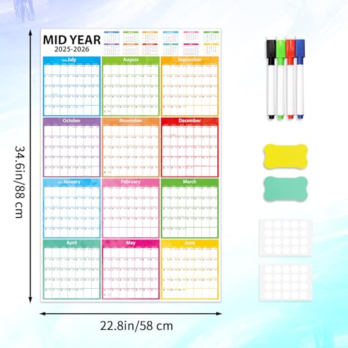 - PRODUCT BUNDLE CONTENTS : This set includes a mid 2025–2027 wall planner calendar with a size of 34.6 x 22.8 inches 2 sheets of glue dots 4 pens and 2 erasers offering all the essentials to get started The planner is presented in a portrait format for convenient viewing