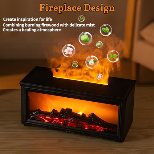 - 【Fireplace Flame Design Diffuser】 Fireplace design creates inspiration for life, combining burning firewood with delicate mist creates a healing atmosphere. Not only enhancing the visual experience but also adding a touch of warmth and comfort to the room. Whether used in the home, office, or bedroom, this aroma diffuser brings a unique atmosphere to the environment while keeping the air moisturized.