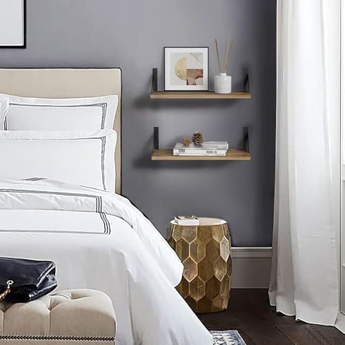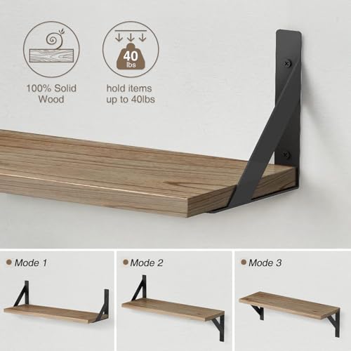 - 【Multiple combinations, More creativity】The classic triangle design of black metal bracket offers two display methods. Install these SAME SIZE shelves with the board on top of the brackets or below to concrete wall provide more decor choices. Hanging them as "a long bookshelf" or "a vertical bookshelf shelving unit" to showcase plants, perfume bottle, candle Jars, family pictures, albums, Knick knacks, stuffed toys, collectibles, picture books, kids books.