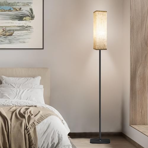 - 【Elegant Lamp Fit for Home Decor】The tall lamp adopts simple design, with a rectangular linen shade, black iron lamp pole and stable black base, which matches perfectly with furniture, fits for contemporary, retro, mid century, industrial style. It's your great choice for your bedroom, living room, office, kids room and any room.