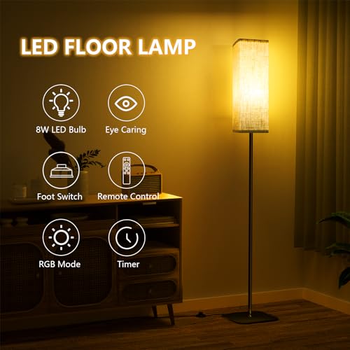 - 【Stepless Dimming with Remote】This tall standing lamp provides stepless dimming (brightness 0%-100%), you can choose from different lights to master every task with the equipped remote control, without leaving the sofa and bed, makes it a perfect bedside / sofa companion. Convenient foot switch allows turn on or off with just one tap, which makes hands-free.
