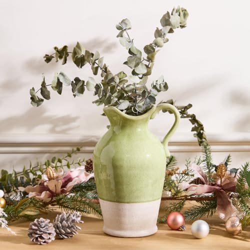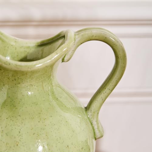 - Green and white vintage style ceramic earthenware pitcher jug vase