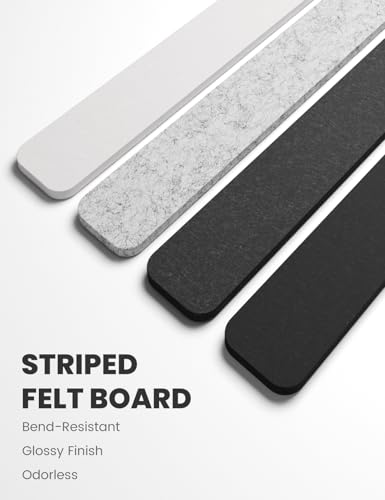 - 【Compact & Slim Design】Each felt strip features an ultra-slim 13"x2"x0.35" design with 50 push pins, 30 adhesive pads, and 7 wooden clips included—create unique bulletin boards at home, office, or dorm to unleash your creativity and personalize any space.