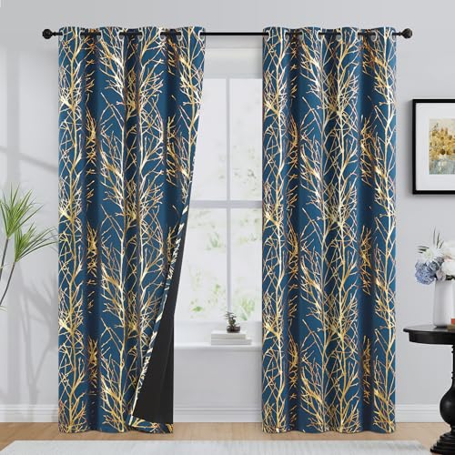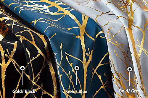 - STYLISH FOIL BRANCH PATTERN: Elevate your décor with these stunning metallic blackout curtains. Featuring a gold foil tree branch print on a black background. The bold, modern aesthetic of the foil gold branch design adds a touch of elegance to your living room, bedroom, dining room, or even your studio or kids' room.