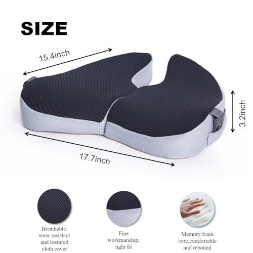 - Ergonomic design to enhance the sitting experience: The car seat cushion is designed with ergonomics in mind, adapting to the user's body structure. The memory foam seat cushion features reasonable shapes and contours, which promote proper sitting posture. The desk chair cushion's design not only assists in mitigating the discomfort associated with prolonged sitting, but also enhances sitting posture and alleviates body pain resulting from inadequate sitting positions.