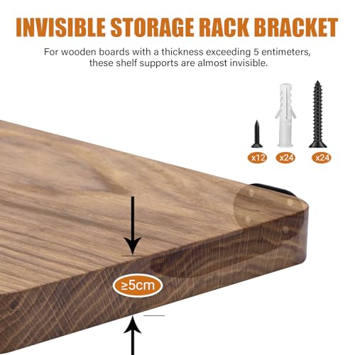- Heavy Duty Shelf Bracket: Fooaot black shelf brackets are made of steel. With high strength screws, it can carry up to 70kgs.It is worth mentioning that when used with thick wood, it will have a hidden function to enhance modern fashion sense for your room, also saves you lots of free space
