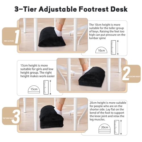- 🌞Relieve Fatigue: When you are working and reading or sitting and resting, the ergonomic footrest can put your feet in the correct position, thereby reducing the pressure on your back and hips, helping to improve blood circulation and relieve leg fatigue. The footrests also have a warm plush desk footrest to keep your feet warm in the winter.