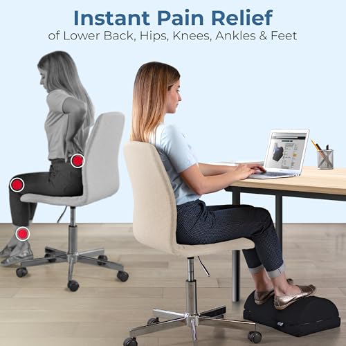 - Recommended by Chiropractors & Orthopedicians: This extra foot support cushion helps to correct your posture while you sit, helping to keep your knees bent at the proper angle, slightly higher than your hips. With our desk foot rest, you will keep your spine perfectly aligned, alleviating pressure from your lower back and shoulders, which will positively impact your health and productivity