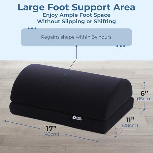 - Top Features for Your Pleasure: If you don't feel comfy enough working from home our adjustable foot rest for under desk is a great solution. 5 Stars United ergonomic foot rest is large enough (43 x 28 x 15 cm), has an adjustable height (from 10 to 15 cm), and medium firmness foam core that provides adequate support. Our footrests 2 memory foam pads are velcroed together to provide various levels of support while the non-slip bottom helps the pillow stay in place