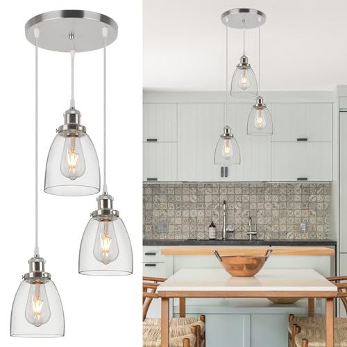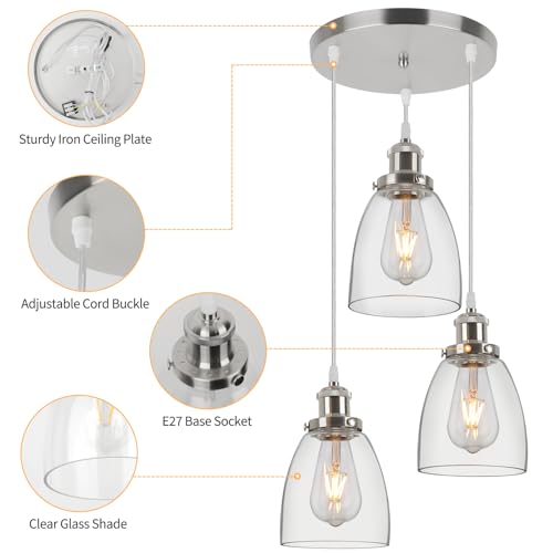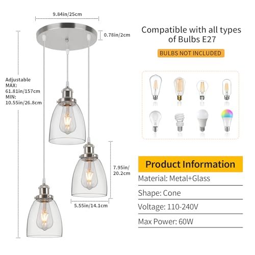 - 【Adjustable Light Fixture】The 3 light pendant light is designed with adjustable hanging ceiling light cord, cord adjustable up to 157cm / 61.8in, which gives you flexibility to adjust the height according to your needs and preference, creating a sense of beauty to the ceiling and make it looks elegant and trendy.