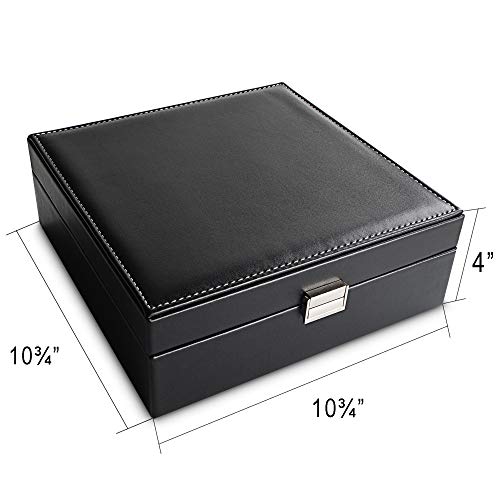 - 2 Layer and RemovabLe Divider:The jewelry storage box comes with double layer design for large storing capacity. The first layer comes with 25 compartments of 1¾ * 1¾ * 1 inch.The bottom layer comes with 25 compartments of 1⅞ * 1⅞ * 1½ inch.These dividers can be removed for big items like sunglasses and watch