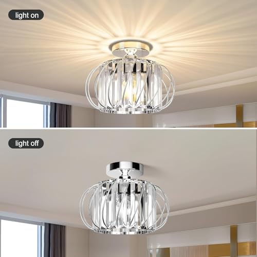 - 【Flush Ceiling Light Design】Unique crystal decoration,looks very luxurious and beautiful.It can be a good match with your home decoration style.The indoor crystal flush ceiling lights creates a comfortable and warm atmosphere for your house.