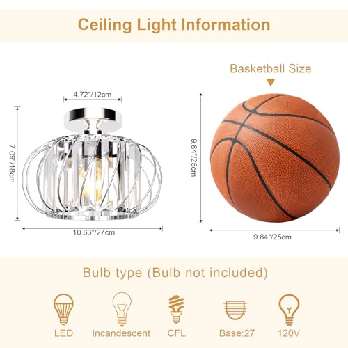 - 【Lamp Size】The chrome ceiling light metal shade diameter:28cm,metal shade height:13cm,base plate diameter:12cm.E27 Base.Bulb Type:LED,Halogen or incandescence.(Bulb not include)