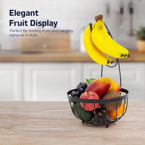 - FRUIT STORAGE & BANANA HANGING: This fruit bowl comes with a built-in banana hanger, helping you store fruits in one place; The compact design also saves counter space while looking stylish in any kitchen