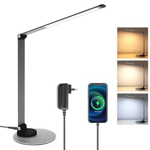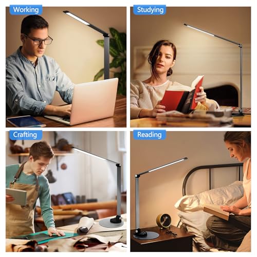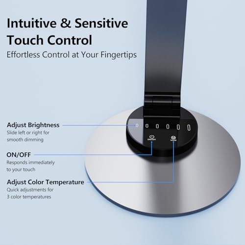 - USB Charging Port & Sensitive Touch Control: This desk light features a built-in USB output port to conveniently charge your phone or small devices, keeping your workspace tidy. Paired with a stable DC adapter, it ensures reliable power. The responsive touch panel allows quick brightness and colour temperature adjustment with just a tap.
