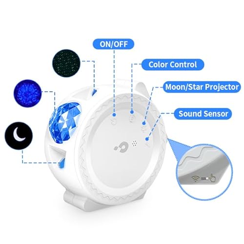 - [Voice-activated& Timer] You can activate the mode with the simplest voice. The beautiful flashing nebula and wave light will change with the rhythm of the music. It is very suitable for parties, children's rooms and birthdays, weddings, etc. which can definitely help you to create a cheerful atmosphere,also you can schedule lights to turn off or on at a certain time of day.