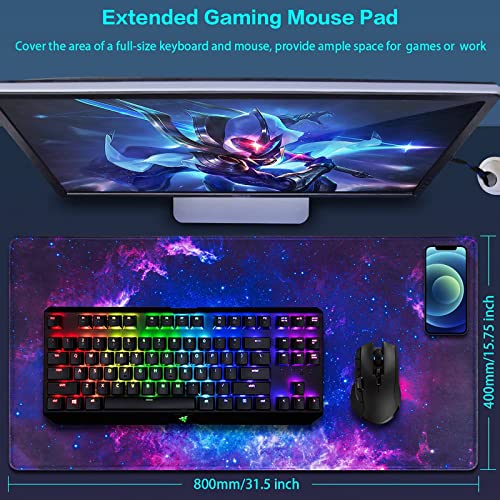 - 【Large Mouse Mat】:The size of the gaming mouse pad is 31.5×15.75×0.12inch, which is enough to protect your various desktops and accommodate your full-size keyboard, mouse, laptop and other items. It will cover the area of a full-size keyboard and mouse, providing ample space for professional games or office work, and is suitable for all types of keyboards and mice.