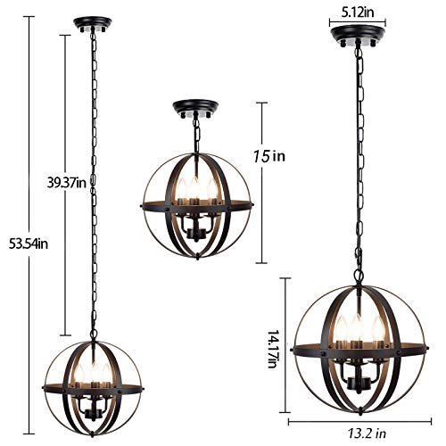 - [ Chandelier Size ] – The diameter of the industrial globe pendant light is 32 cm / 12.6 inches. Ceiling canopy diameter: 13 cm / 5.12 inches. Decorate the room by adjusting the pendant light to your preferred height through 100 cm / 39.37 inches chain.