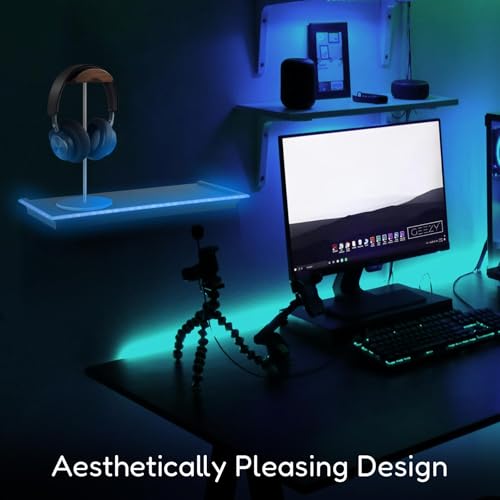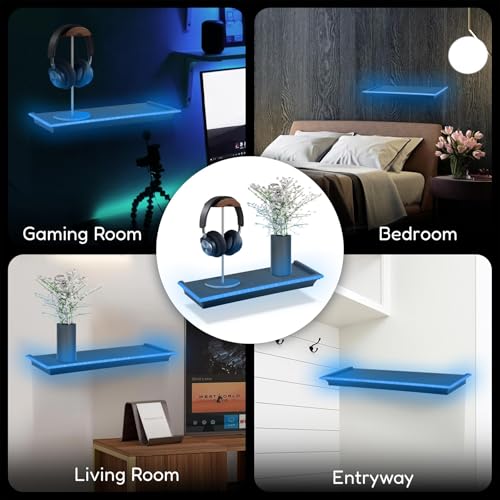 - MODERN AND SLEEK DESIGN: Our black floating shelves with lights combine a minimalist design with vibrant blue LED lighting, creating a striking focal point. Perfect for any gaming bedroom, lounge, or modern home décor.