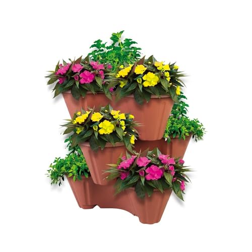 - STACKABLE DESIGN: The Stackable Strawberry Planter features a triple design with 3 potting spaces, allowing for efficient vertical gardening. Ideal for strawberry planters outdoor, maximizing small garden spaces.