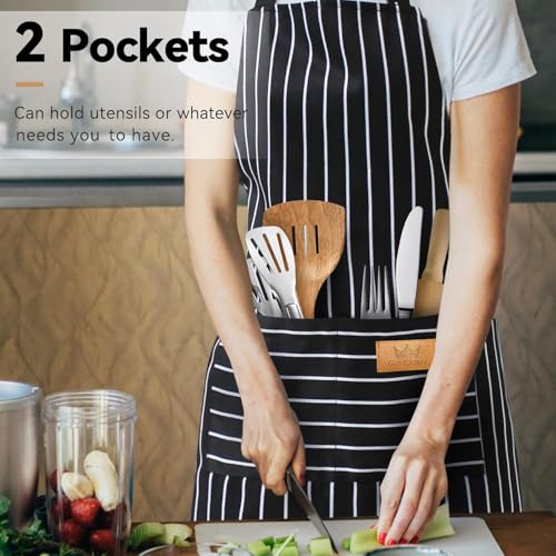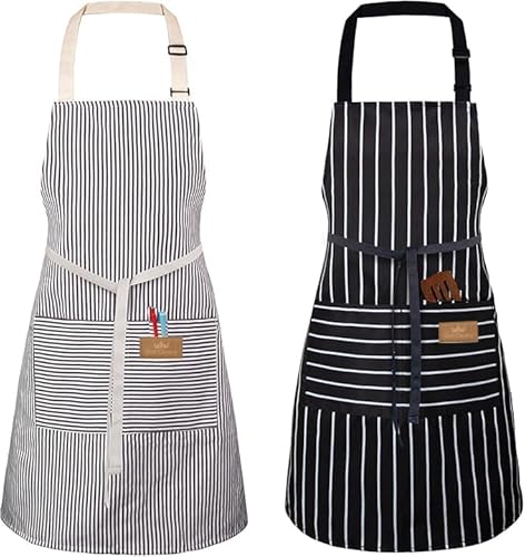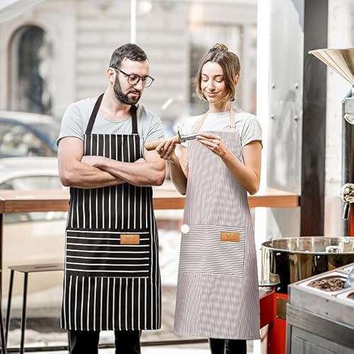- 2-Pack Aprons: Includes 1 white stripe and 1 brown stripe apron—great for couples or daily rotation.
