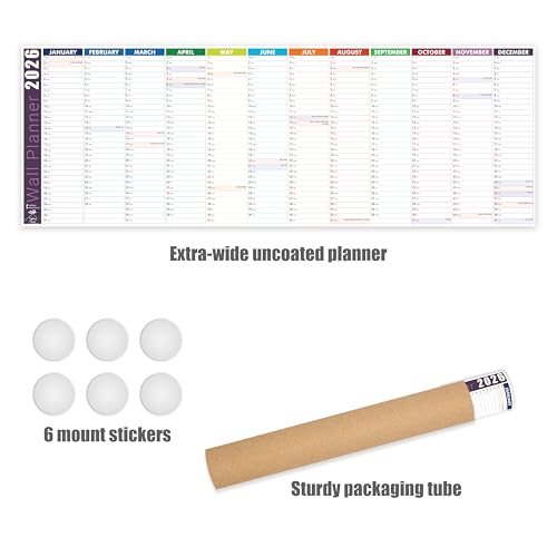 - 🗓️ (WALL PLANNER 2026): This planner runs from January to December 2026 and includes marked holiday dates. It comes with 6 mount stickers, making it easy to attach to the wall.