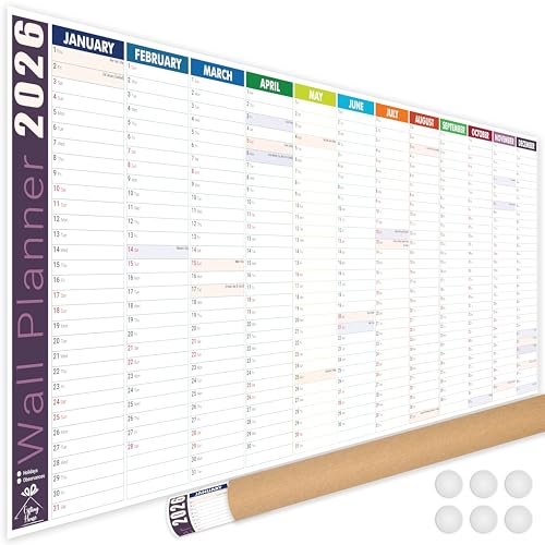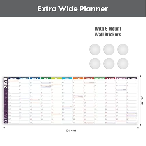 - 🗓️ (EXTRA WIDE DIMENSIONS): The Giftinghouse 2026 Wall Planner measures 120 x 42 cm, providing ample space on each date for notes. An ideal and practical calendar to keep track of your busy days.