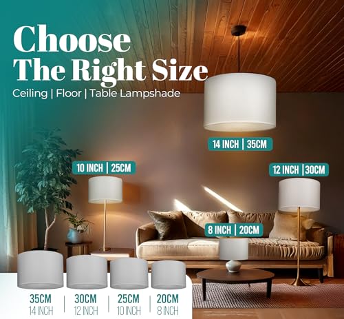 - DURABLE & STYLISH WITH VERSATILE OPTIONS: Crafted with premium materials for long-lasting performance and timeless style. Available in 8", 10", 12", and 14" sizes in Beige, Grey, or Black. Choose a soft beige lampshade, a sleek grey light shade, or a bold black lampshade to create a cozy ambiance.