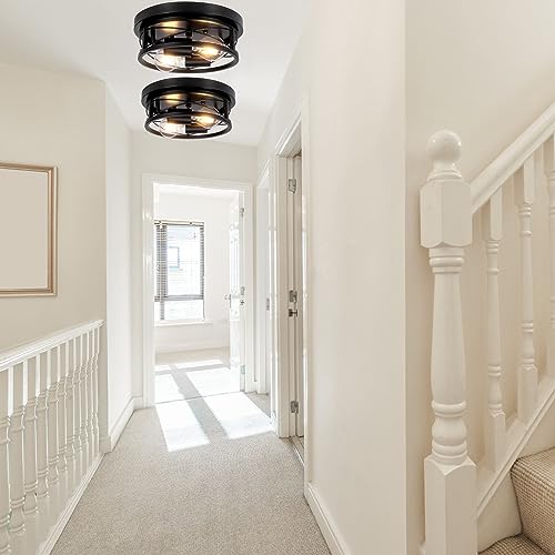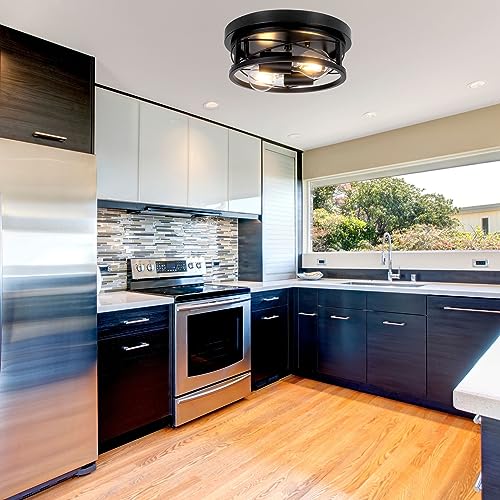 - RETRO FARMHOUSE INDUSTRIAL STYLE: Elevate your living spaces with the trendy minimalistic open design Giggi round metal cage black industrial ceiling lights, giving 360° illumination, lighting up the whole room. Perfect ceiling lights for bedroom, living room lights, kitchen lights ceiling, and hallway ceiling light