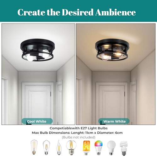 - PERFECT FOR EVERY ROOM: These retro yet modern ceiling lights create a warm and cosy atmosphere in any room. Enhance your living room, kitchen, bedroom, or dining area with this industrial ceiling light. Perfect black ceiling lights for living room, bedroom ceiling light, kitchen ceiling light, dining room lights ceiling, and hallway lights ceiling