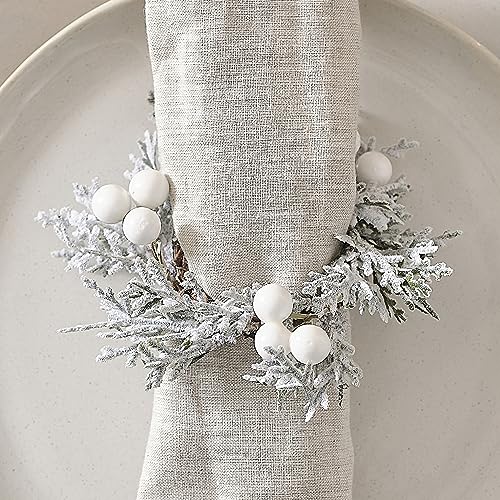 - Display your napkins in style with these snowy foliage Christmas napkin rings