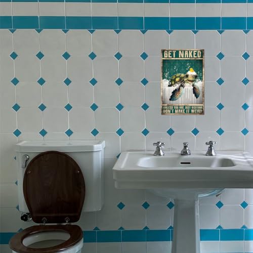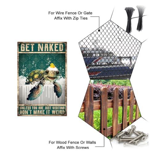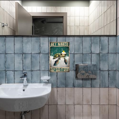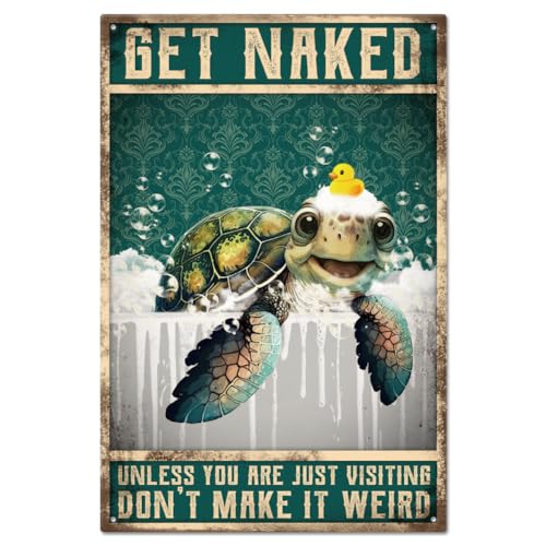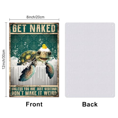 - Bathroom Theme: The metal tin poster plaque has a pattern of sea turtle, with text "Get Naked Unless You are Just Visting Don't Make it Weird". The metal tin logo is easy to understand and interesting. Size: 30x20cm/12x8inch.