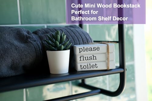 - 【Funny Bathroom Decor】This farmhouse inspired tiny wood books is so adorable and lovely, perfect decor for bathroom shelf, bathroom counter, and toilet in your bathroom, half bathroom and kids' bathroom. As a toilet decorative accessory, this funny restroom decor can instantly brighten the appeal of the bathroom. They are cute as just a shelf sitter or to just sit on your toilet. Also fits perfectly on toilet tank tray, wood riser or on tiered tray.