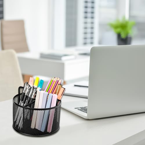 - Portable Handheld Design: The black pen holder has a top handheld design for easy carrying. Whether in the home office, office, studio or classroom, you can easily move or adjust the position of the pen holder. The round design has smooth edges and does not hurt your hands. The rubber sticker on the bottom protects the desktop from scratches and prevents the metal pen holder from sliding on the desktop