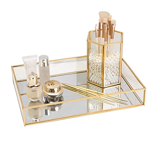 - 【High quality&Durable】:This Nordic style golden storage tray is very high-quality and durable, with transparent and bright glass and a strong metal frame. Exquisite workmanship, and strive to provide you with excellent workmanship quality and comfortable experience.