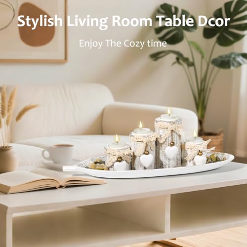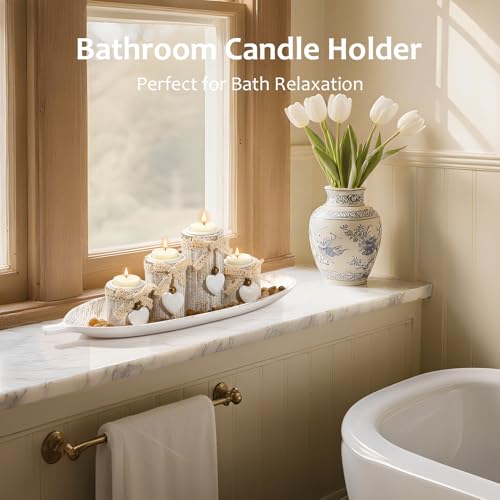 - Wooden Candle Holders with Tary – Handcrafted from durable wood with solid Wood with Distressed White Finish – Made from sustainably nautue wood with a chip-resistant painted coating. Lightweight stable with a wide, flat base to prevent tipping, even with burning candles
