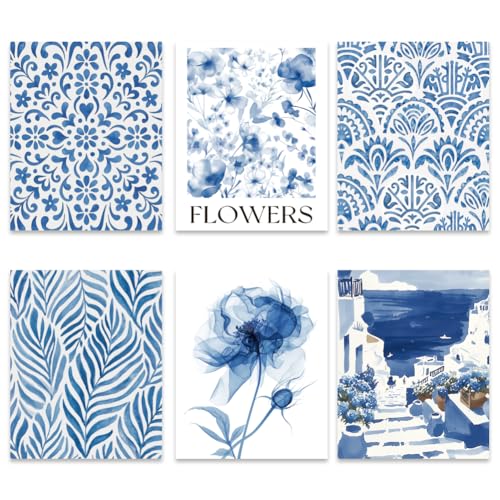 - 6 Styles of Elegant Blue Wall Art: This set of wall poster designed with blue elements, features blue coast, blue ceramic pattern and blue hydrangeas in a watercolor style, perfectly complements modern home decor