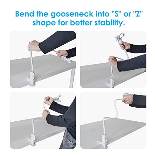 - Using Tips – Please be noticed that this type of phone holder is good for reading and viewing only. When you tap on your tablet, because of its design principle of structure, it unavoidably bounces and wobbles. In that case, try to Loop The Goose neck arm that closes to bracket into "S" or "Z" Shape, It will improve the stability. Please use one hand to hold your phone while the other hand touches screen.