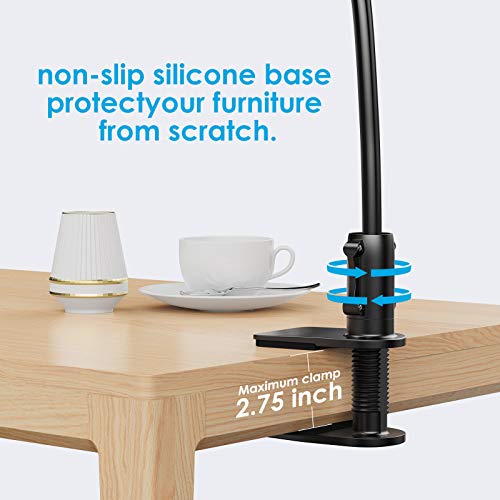 - Easy to Install. – Featuring the adjustable clamp base varying from 0 to 3.15 inches (8cm), the cell phone clip holder can be securely mounted on the bed frame, bedside, headboard, nightstand, desk, end table and kitchen counter etc. A non-slip silicone base won't scratch the surface of your furniture.