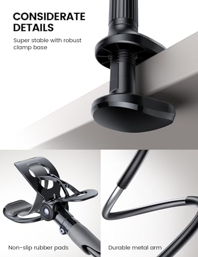 - 【33.4in Long Gooseneck】 Longer gooseneck gives you more freedom of adjustment. And make this gooseneck phone holder easy to twist, strong and bendy arms secure your smart phone to prevent falling or moving around.