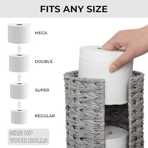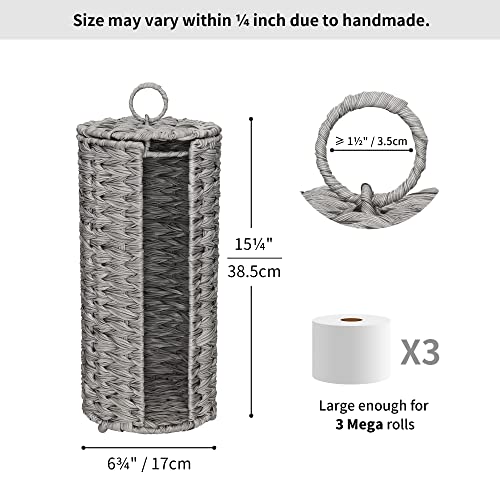 - Hold 3 Toilet Rolls – The grey free standing toilet roll holder measures 38.5 cm Hight x 17 cm Diameter, large enough for 3 paper rolls, perfectly solving toilet paper rolls storage.