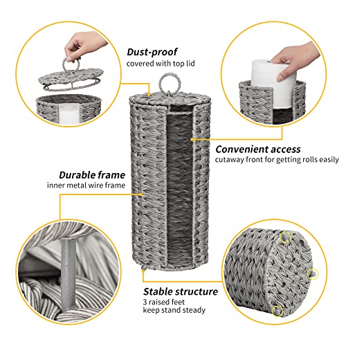 - Premium Quality – Made of recyclable plastic wicker handwoevn on the metal frame, the wicker toilet paper holder free standing will last for years to come. And super easy to clean, the toilet roll holder can be rinsed with water.